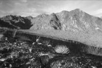 "This is my last night here [Tinajas Altas]. Tomorrow, Win comes with the horses and I shall go home as quickly as possible. But I will not forget these mystical nights, sitting alone here in camp in the moonlit desert. The calm, the silence, the radiance of the mountains, the softness of the light and the mystery pervading the scene. My trip has been completely successful.... The sunsets have been wonderful, especially tonight, with the lighted clouds changing from golden to crimson to pink, all seen through the vistas of the craggy mountain masses. As I look out on the desert by moonlight, it seems so soft and hospitable. The sense of its death-dealing aridity is lost. I shall hunt for an hour at daylight and that will be my last. Then all my thoughts will be centered on home." Mile 0.0. 32°19'31.1"N, 114°02'59"W. Key Junction at sign A-16. Go north (straight). Mile 0.3. 32°19'49.8"N, 114°03'00.3"W. Junction: go north. Faded BLM sign announcing Tinajas Altas. Also sign C-19. Other, wider road goes southeast and is a bypass for vehicles not wanting to visit Tinajas Altas. Mile 1.1. 32°20'30.3"N, 114°02'59.5"W. Sign C-18. Side road northwest to the mountain. Not closed to the public. Good camping sites can be found along the route. As you go.... Miles 1.2 to 1.9: Cholla forest, highlighting teddy bear cholla, diamond cholla, and others. A wash at Mile 2.3 features ironwood trees, occasional mesquites, horsfordia and desert lavender. Mile 3.4: Junction C-17. A dead-end spur. Continue straight. As you go.... Miles 4.3 to 5.9: From road to apartment house. Piles of sand removed from the road by a maintenance crew have been colonized by a variety of rodents and plants. Mile 4.5: Junction C-16. A dead-end spur. Continue straight. Mile 5.9: Junction C-15. A dead-end spur. Continue straight. Mile 6.6. 32°25'06.1N, 114°04'51.8"W. Historical footnote: the concrete pad and posts along the west side of the road once marked the inclusion of Tinajas Altas within Cabeza Prieta National Wildlife Refuge. For a short period in the 1970s, 80,000 acres were added to the Cabeza Prieta National Wildlife Refuge as part of a BLM land swap, later reversed by Congress. At that time BLM managed the natural and cultural resources of the Range, as the Marine Corps now does. The annex ran from here to the international border, and westward nearly to the Butler Mountains.